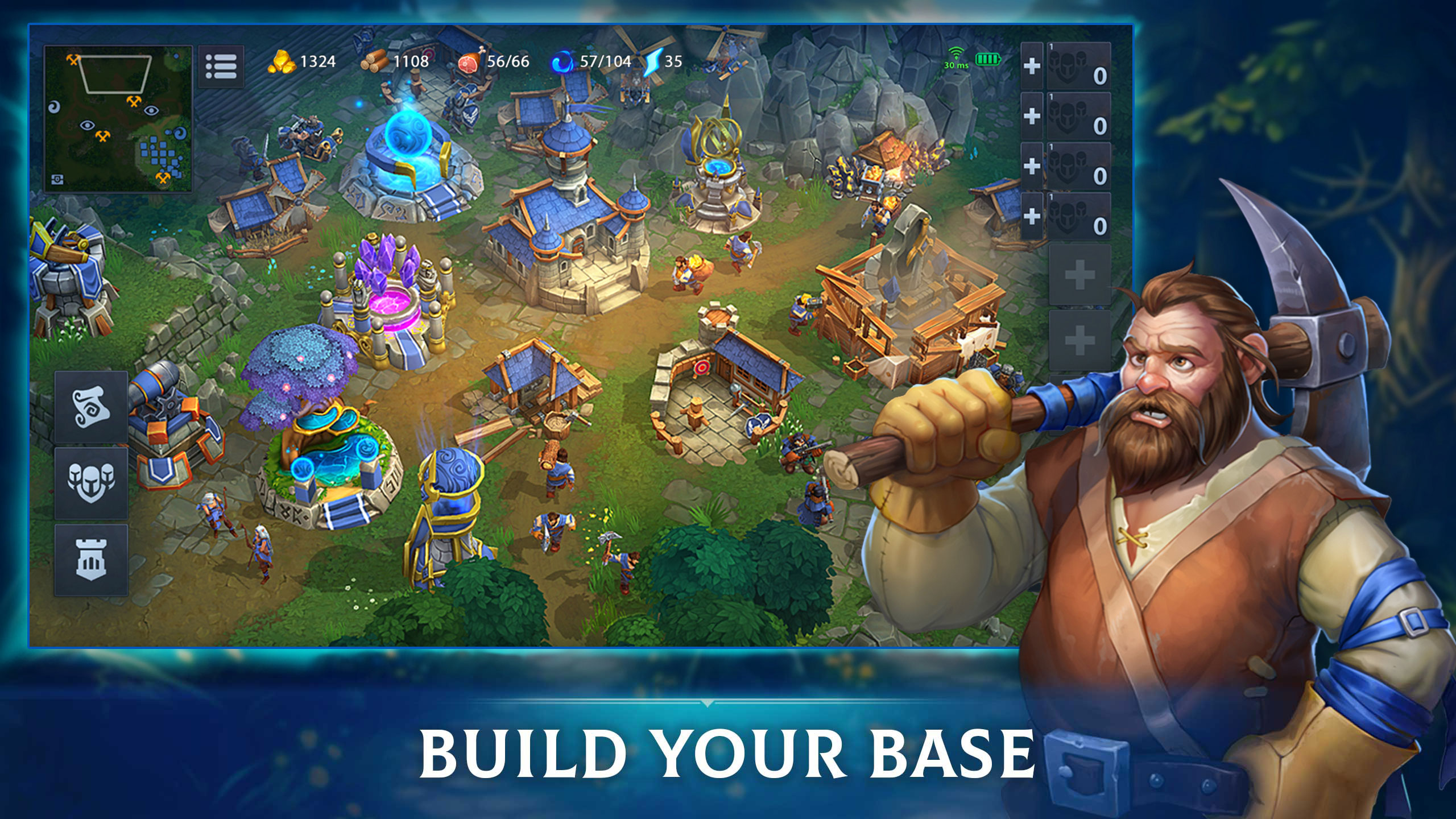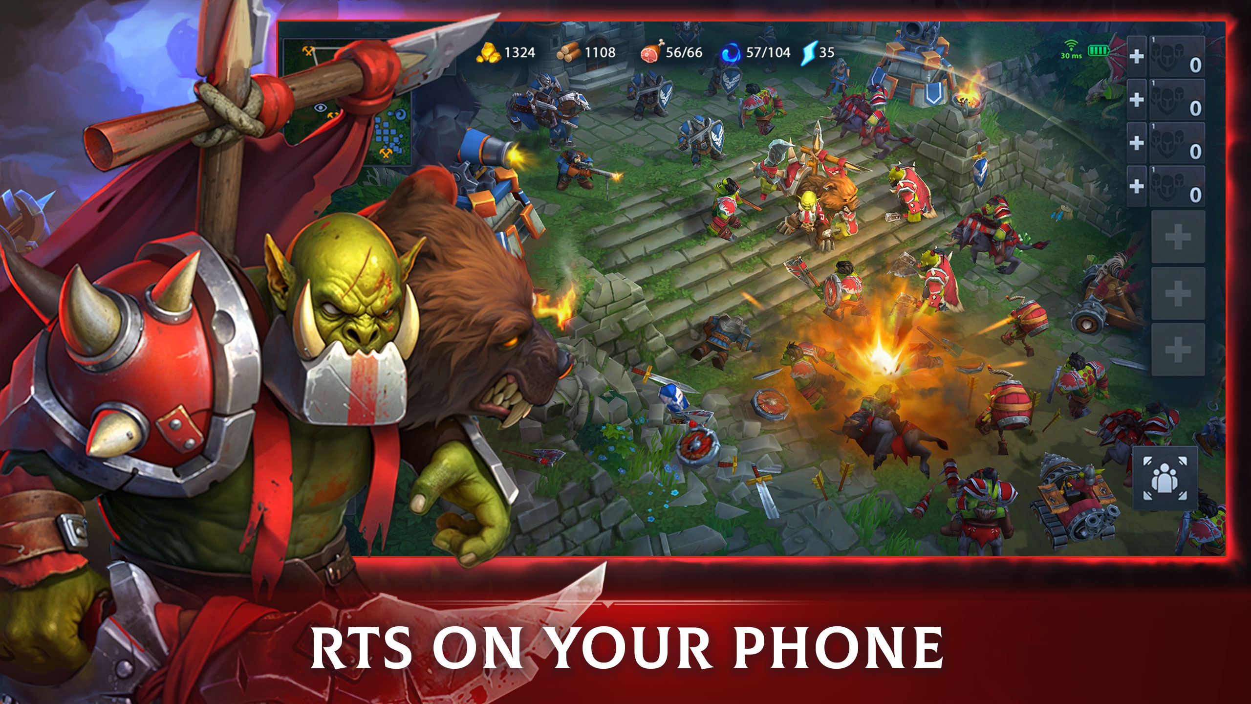 Gather resources, build your base, train units, and take direct control of your army