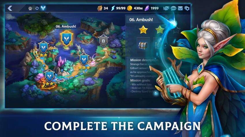 Use hero abilities and hire reinforcements without breaking away from the battle. The controls are perfectly adapted for mobile devices.